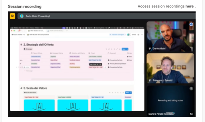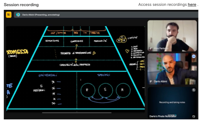 • Accesso alla tua area personale con le registrazioni delle tue sessioni, per sempre.